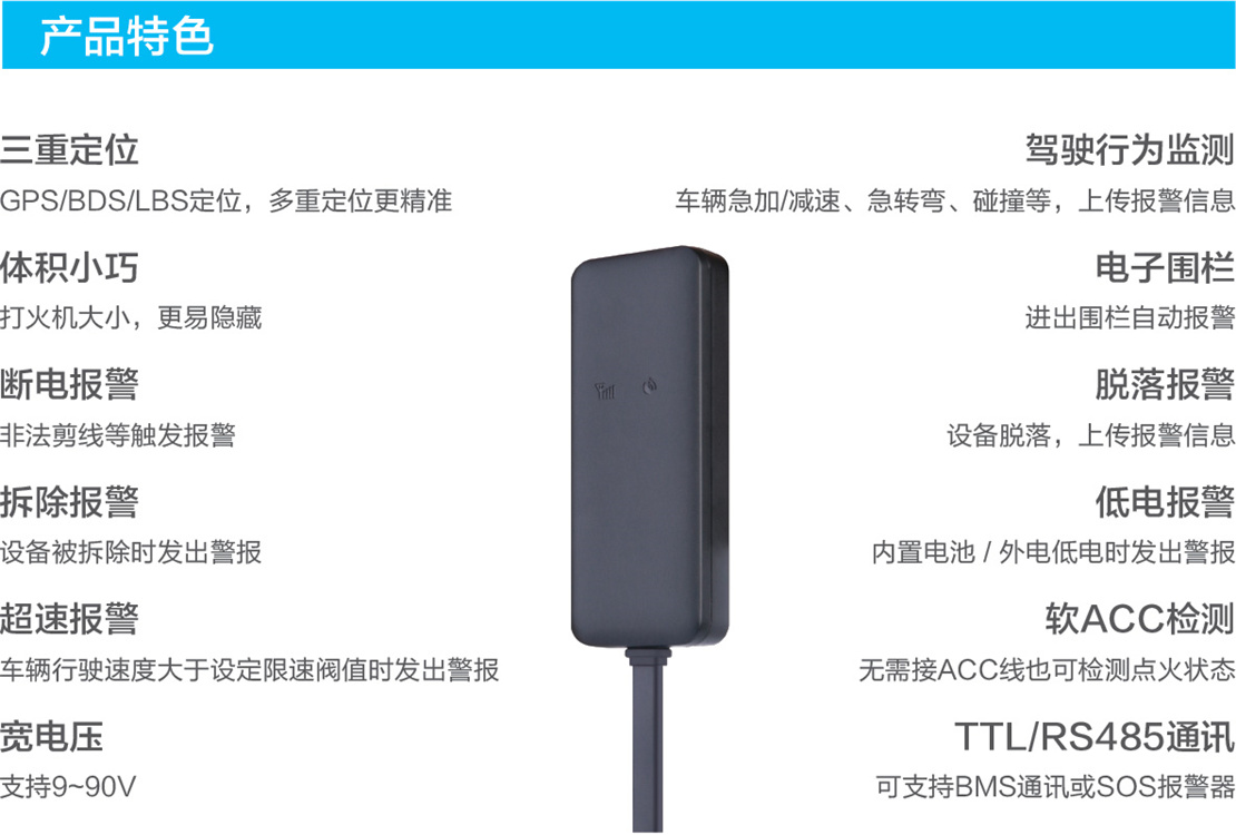 北斗定位EV26定位器EV26是一款微型车载定位终端,体积小信号强,性能更稳定,便于隐藏。它融合了GSM+GPRS+GPS+BDS+LBS无线通讯网络系统定位技术,定位更快更精准。终端结合驾驶行为分析
